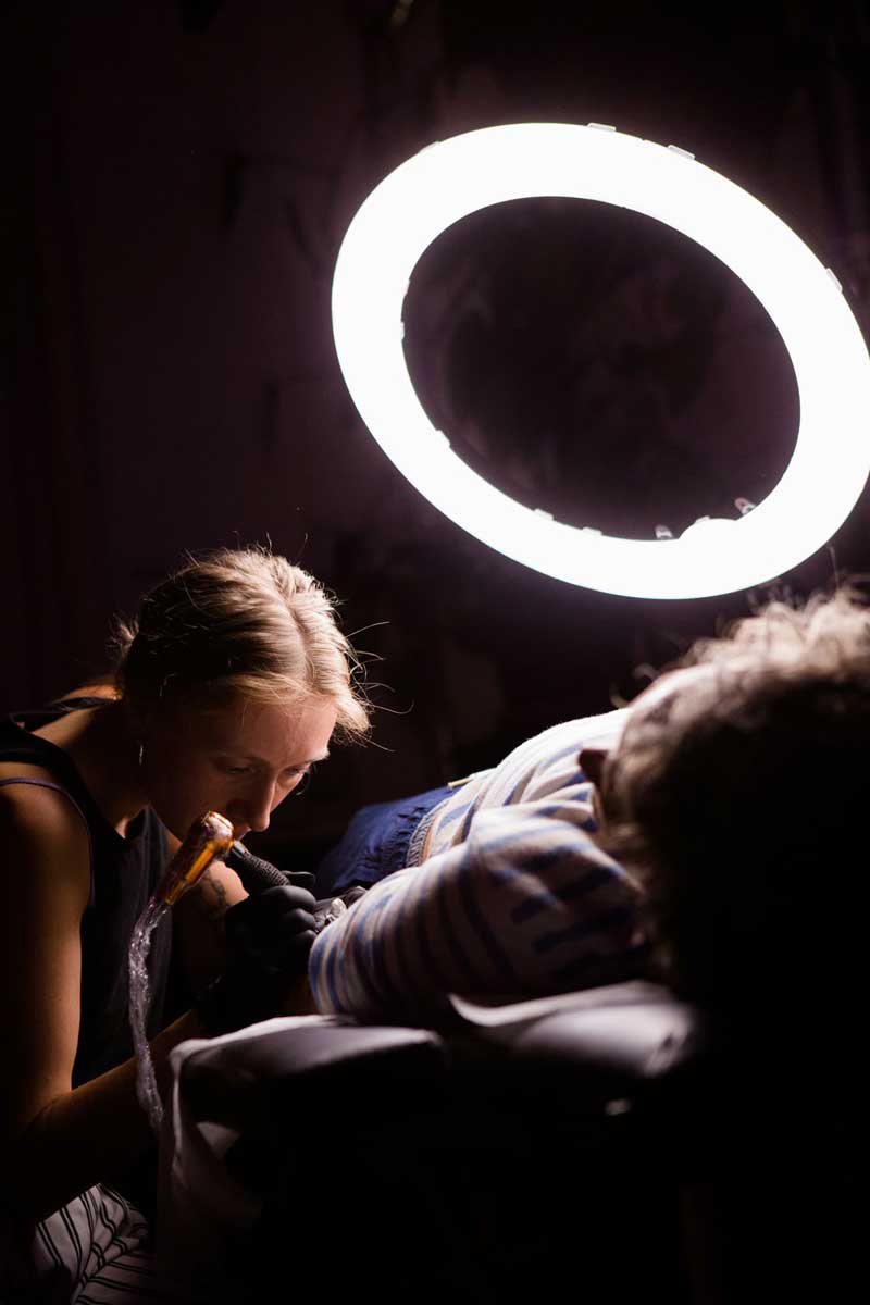 Nach dem Dinner erwartete die Gäste ein besonderes Highlight: Unsere Studio-Künstler Yuri und Julia boten „Flash Tattoos“ im Motto des Abends an.